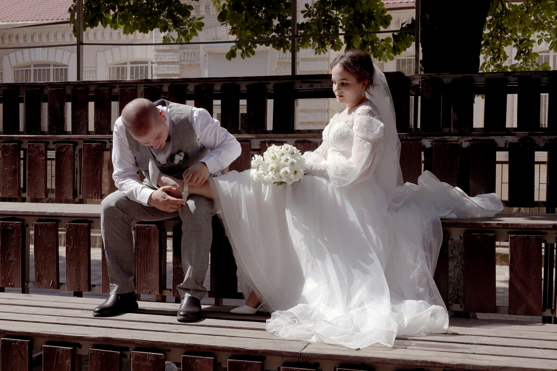 Виктор и Виктория. Даже около дома можно сделать шикарные свадебные фото